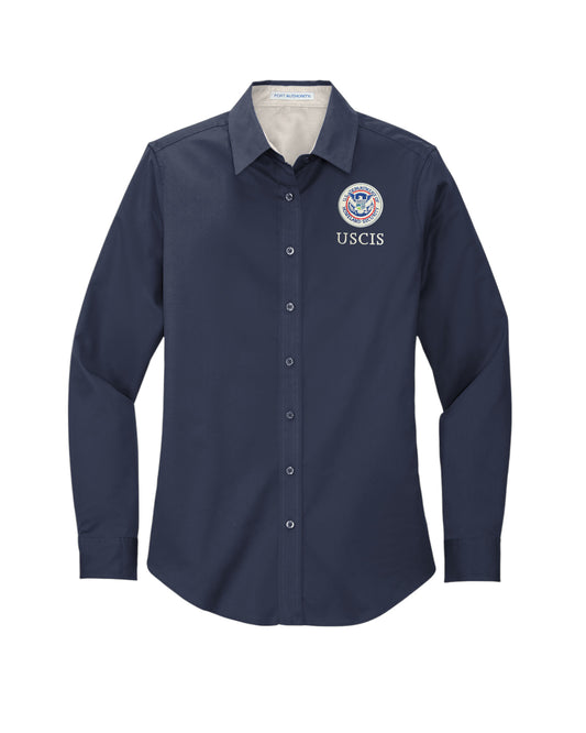 WOMEN'S USCIS LONGSLEEVE TWILL BUTTON UP DRESS SHIRT-L608