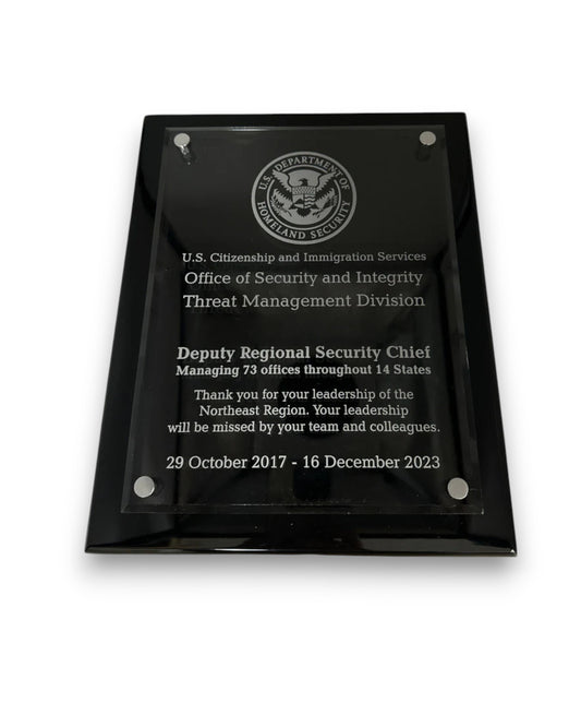 10 1/2" x 13" BLACK PIANO FINISH FLOATING ACRYLIC PLAQUE