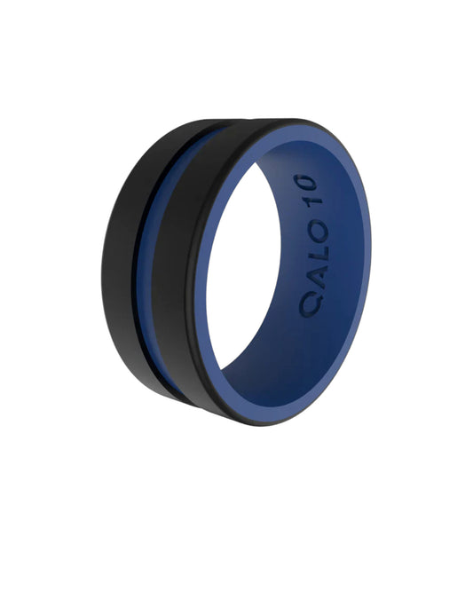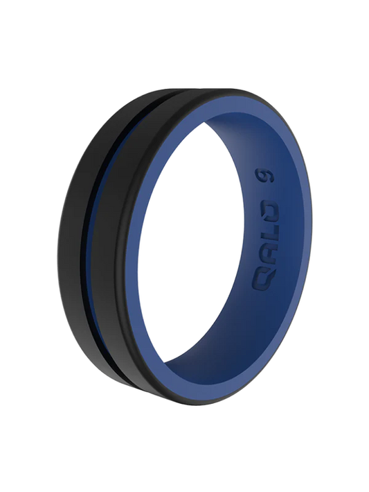 QALO MEN'S POLISHED STEP EDGE SILICONE RING MIDNIGHT BLUE