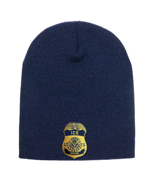 ICE OFFICER BADGE SKULL KNIT BEANIE
