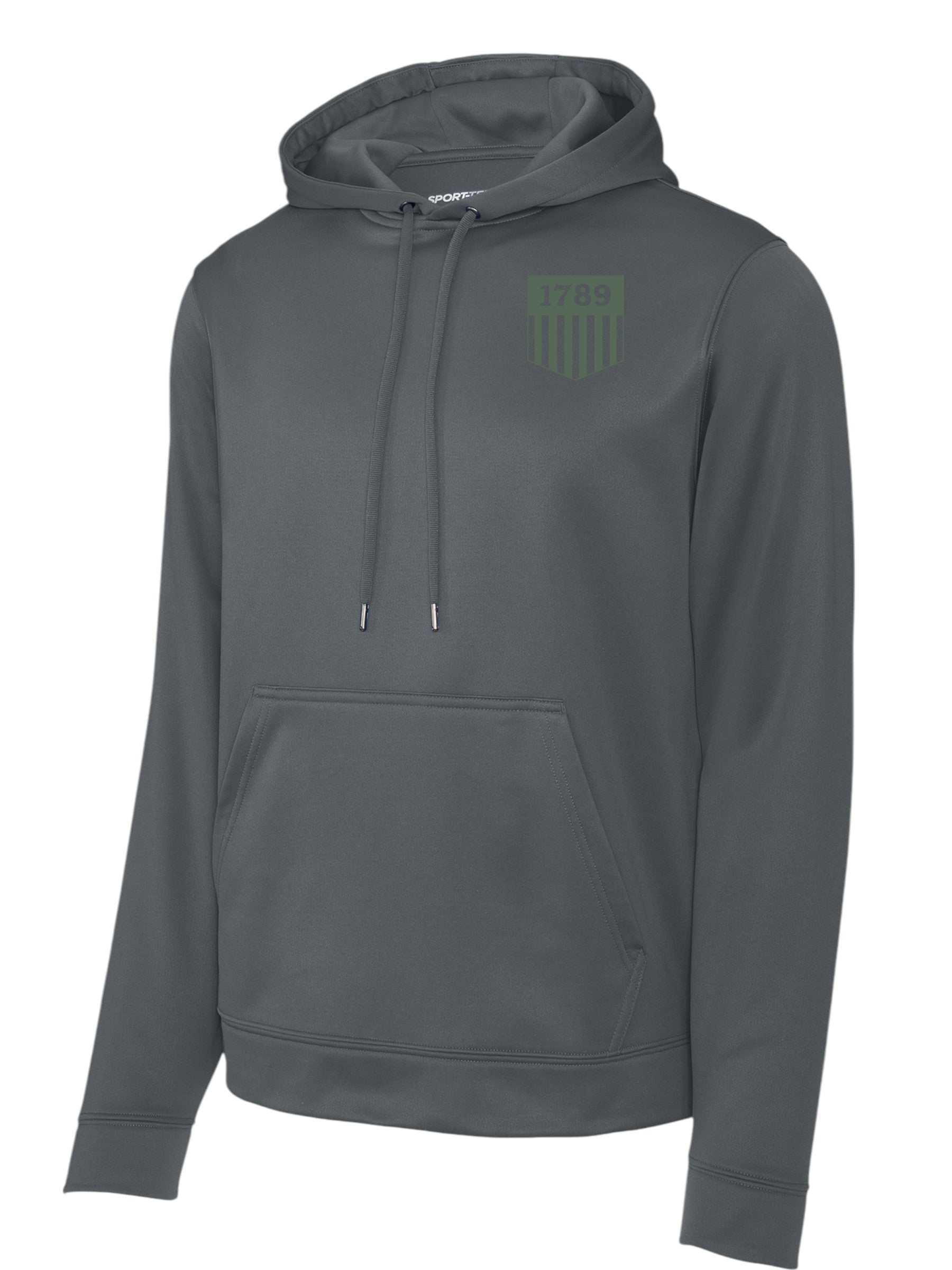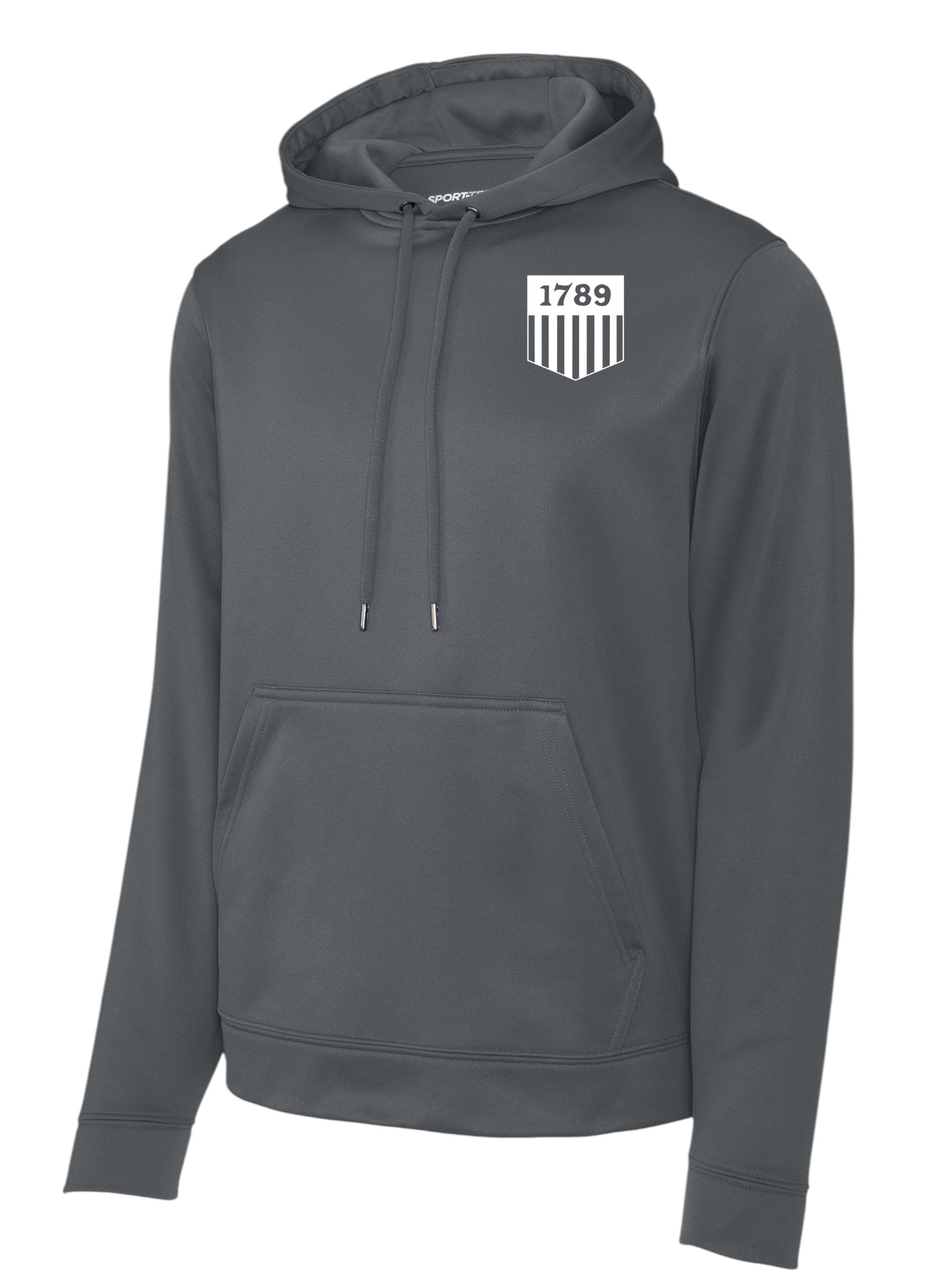 SPORT TEK WICKING HOODED SWEATSHIRT WITH 1789 SHIELD SILK SCREENED ON FRONT LEFT CHEST.