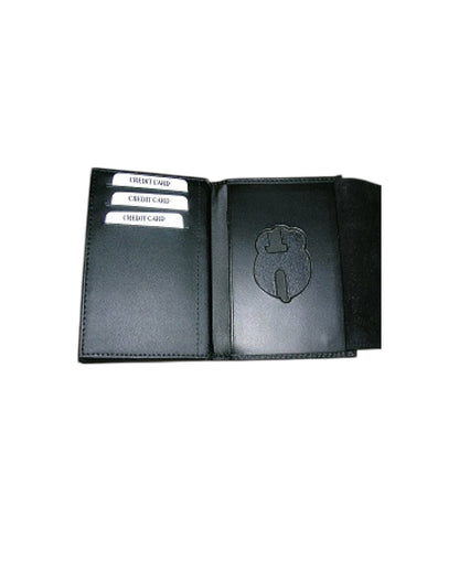 All wallets have a money compartment. Three credit card slots, two ID windows and recessed badge section. Leather exterior and features durable man-made material on the interior. They have a recessed badge mount with suede flap to protect badge’s luster and finish. The two ID windows are separated by a sewn piece of felt. A Strong Leather Company product.