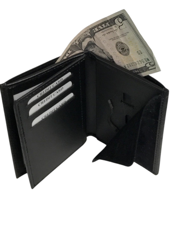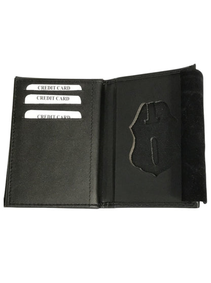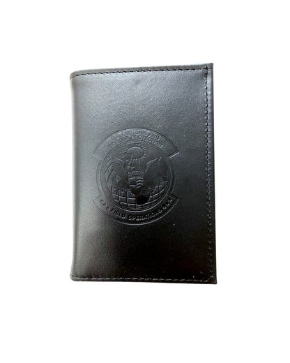 The wallet is debossed with the FIELD OPERATIONS SEAL. All wallets have a money compartment. Three credit card slots, two ID windows and recessed badge section. Leather exterior and features durable man-made material on the interior. They have a recessed badge mount with suede flap to protect badge’s luster and finish. The two ID windows are separated by a sewn piece of felt. A Strong Leather Company product. Imported