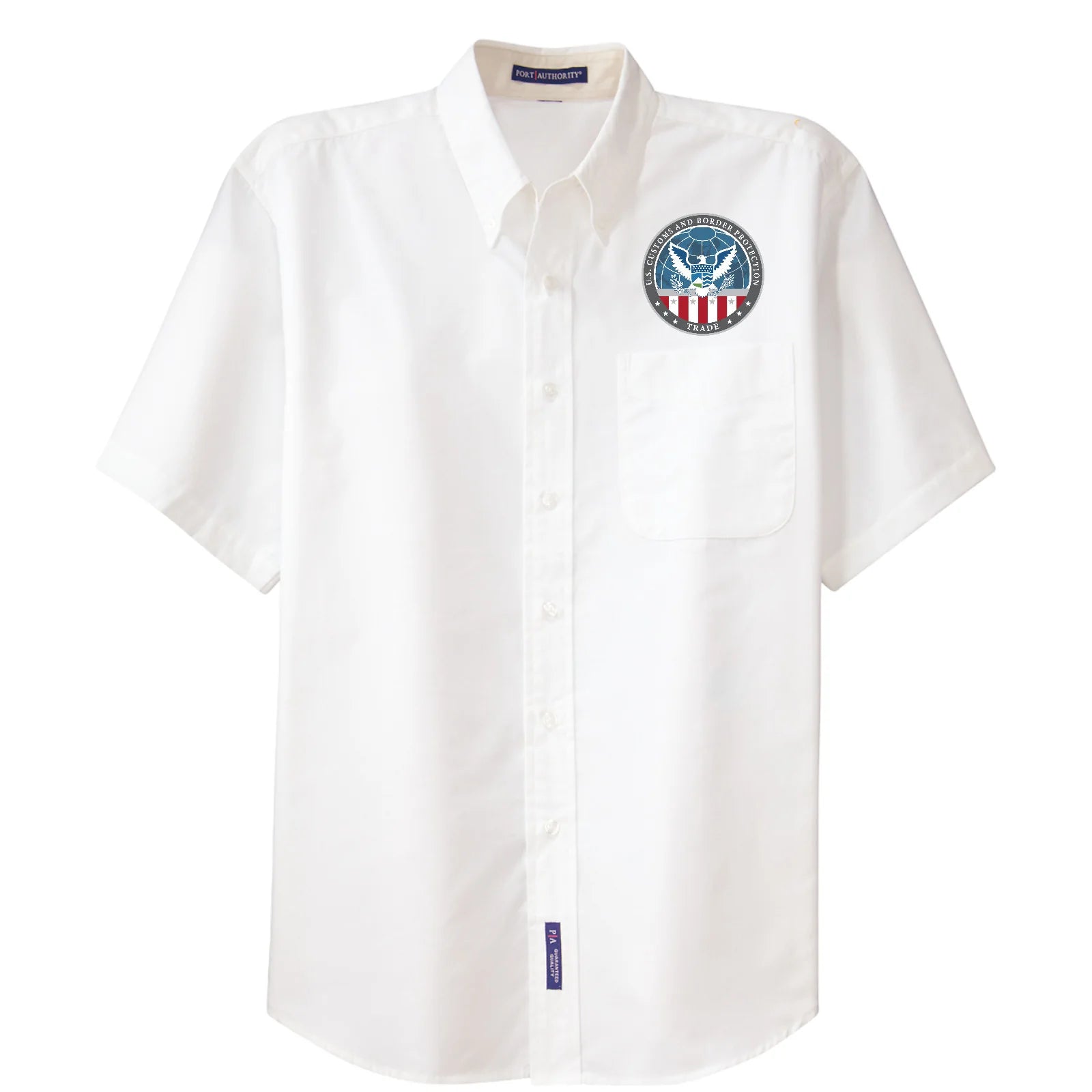 CBP OFFICE OF TRADE LOGO EMBROIDERED ON FRONT LEFT BREAST, OPTION FOR CUSTOM NAME AND CUSTOM TEXT UNDER SEAL