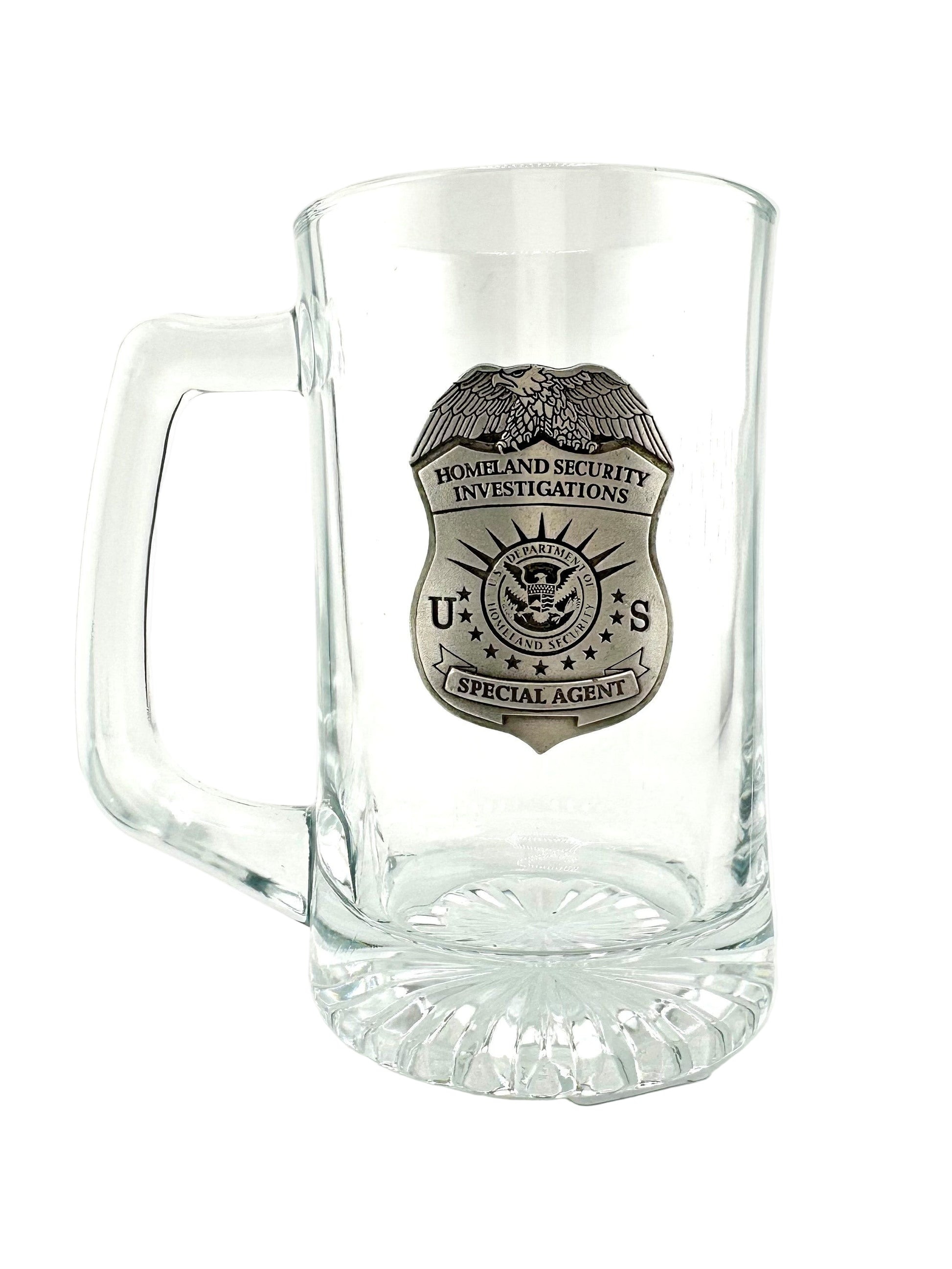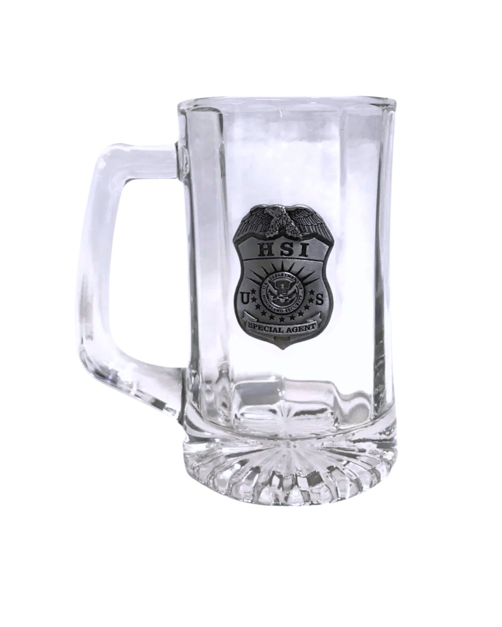 Show off your tactical prowess with our HSI Special Agent Pewter Badge Beer Mug. With a bold and sturdy pewter badge emblazoned on the front, this mug is perfect for all your covert operations. Enjoy your favorite brew in style and declare your allegiance to the HSI. Order now!