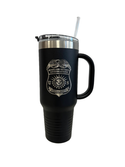 TRAVEL MUG WITH HANDLE AND STRAW 40 OZ