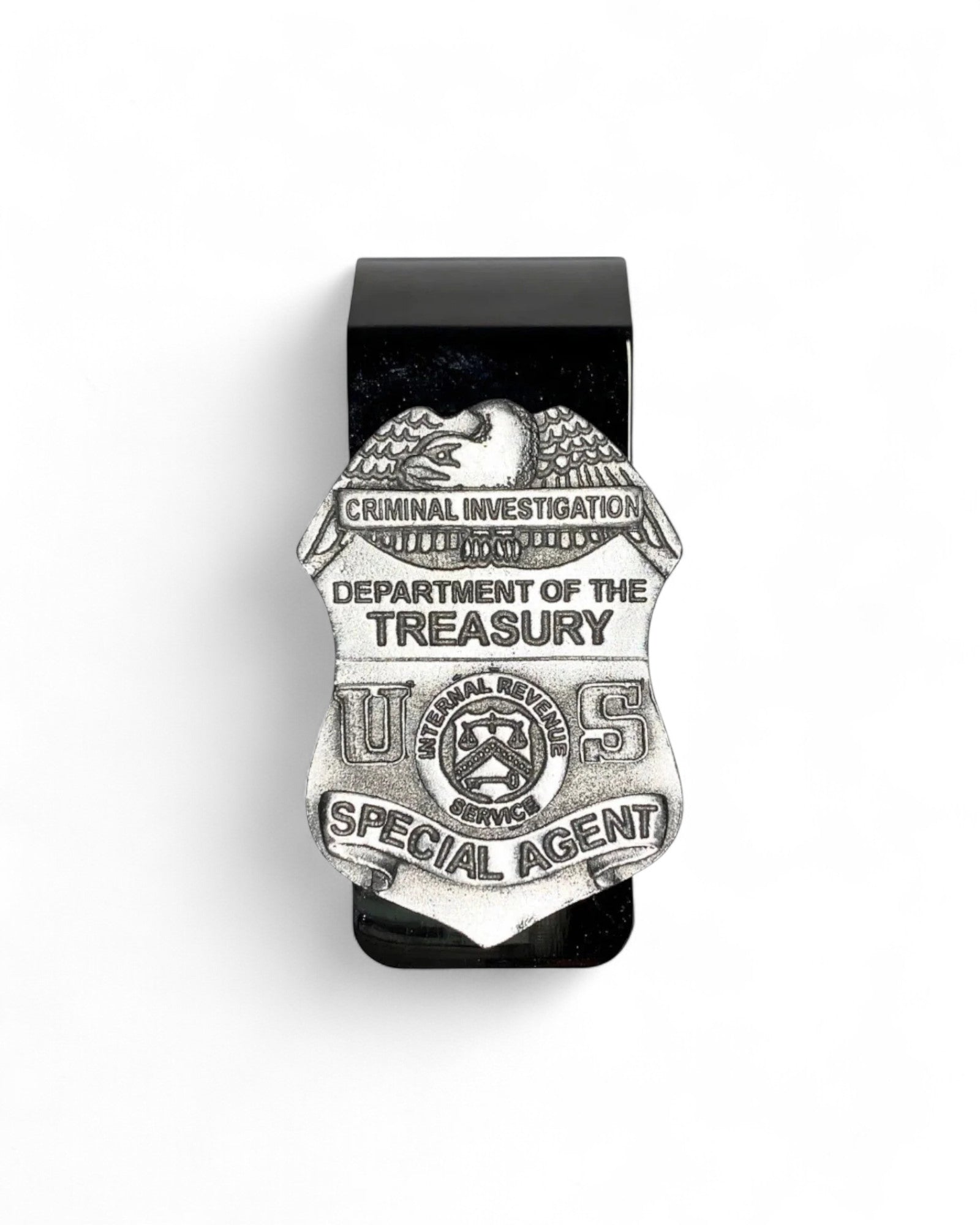 Simplify your wallet and show your support for the IRS with this sleek money clip. The IRS CI badge adds a touch of professionalism and pride to your everyday transactions. Keep your cash organized while representing a worthy cause.