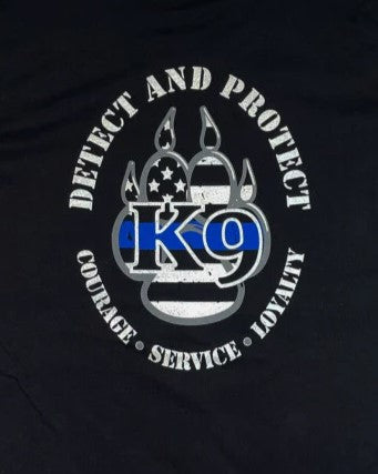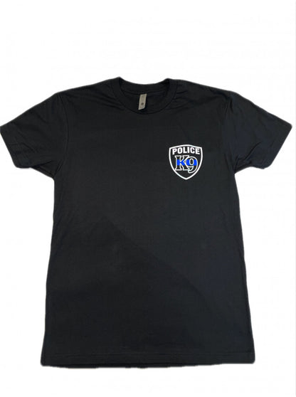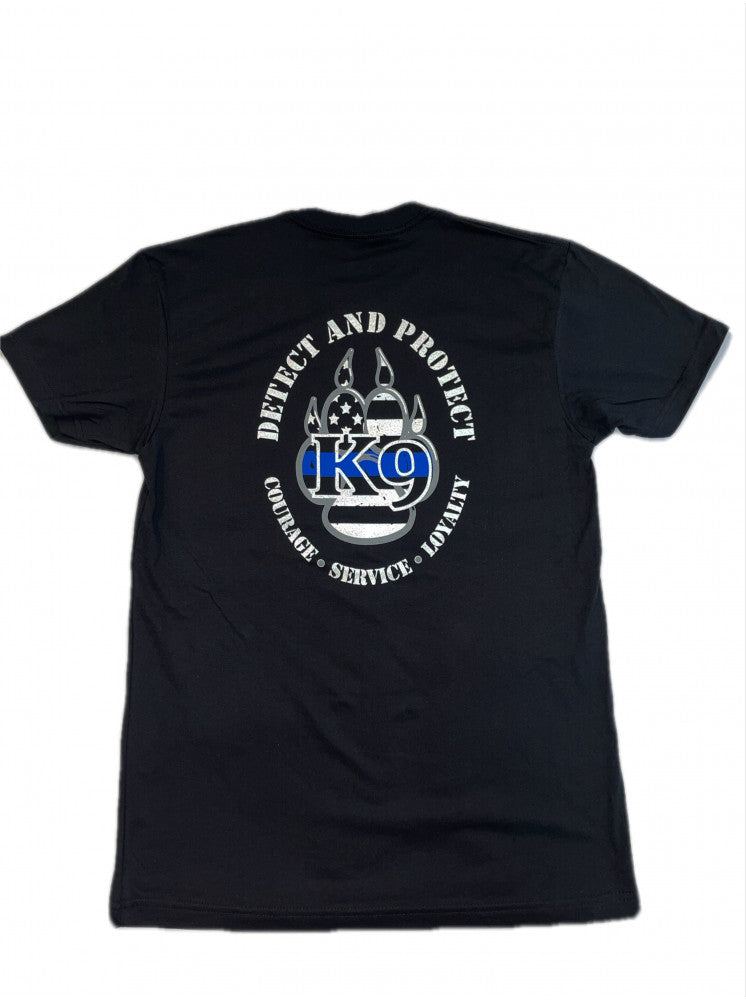 Honor and support your loyal K-9 with our K-9 T-SHIRT. Made with moisture-wicking properties, this black shirt keeps you comfortable while you display your appreciation for these courageous canines and officers. Available in sizes SM-XXL.