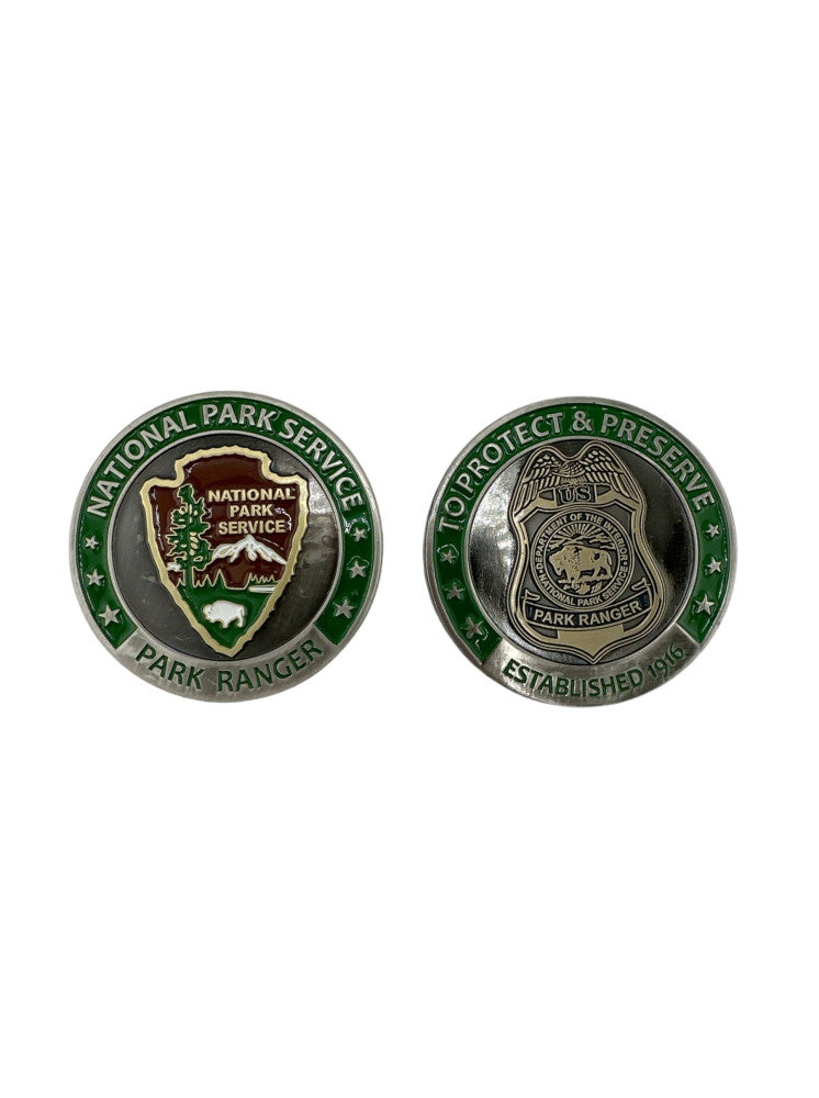 Celebrate the National Park Service with our NPS Challenge Coin. Featuring a 1 1/2" NPS Park Ranger Badge on one side and the iconic NPS Arrowhead on the other, this coin is a tribute to those who protect and serve our beloved parks. A must-have for any NPS supporter.