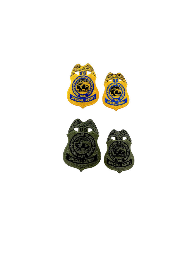 NATIONAL PARK SERVICE SPECIAL AGENT BADGE PATCH. AVAILABLE IN GOLD ONLY 3 1/2" AND 2 7/8" SIZE.