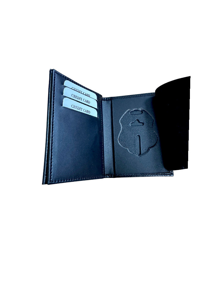 WALLET STYLE BADGE CASE. FITS THE POSTAL POLICE BADGE. HAS TWO WINDOWS FOR ID’S AND FELT BETWEEN WINDOWS. FEATURES 4 SLOTS FOR CREDIT CARDS AND FELT OVER BADGE FOR EXTRA PROTECTION. ALSO OPENS AS A WALLET TO CARRY MONEY.
