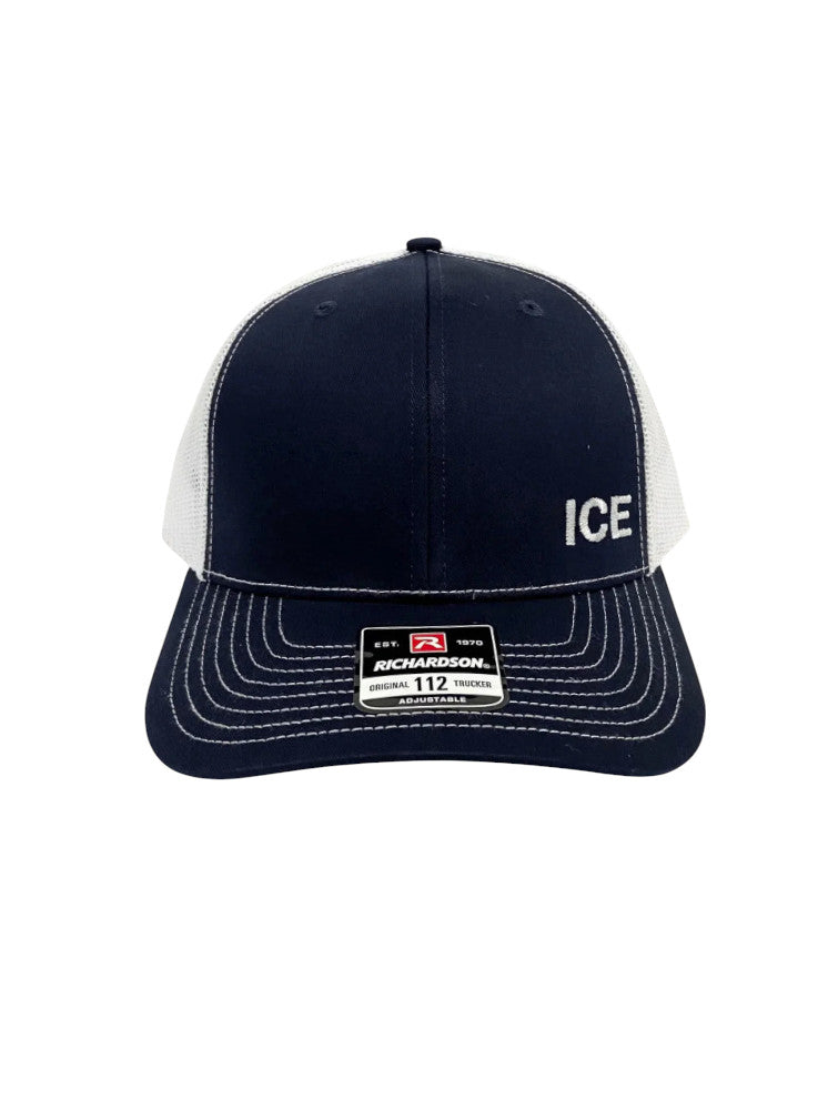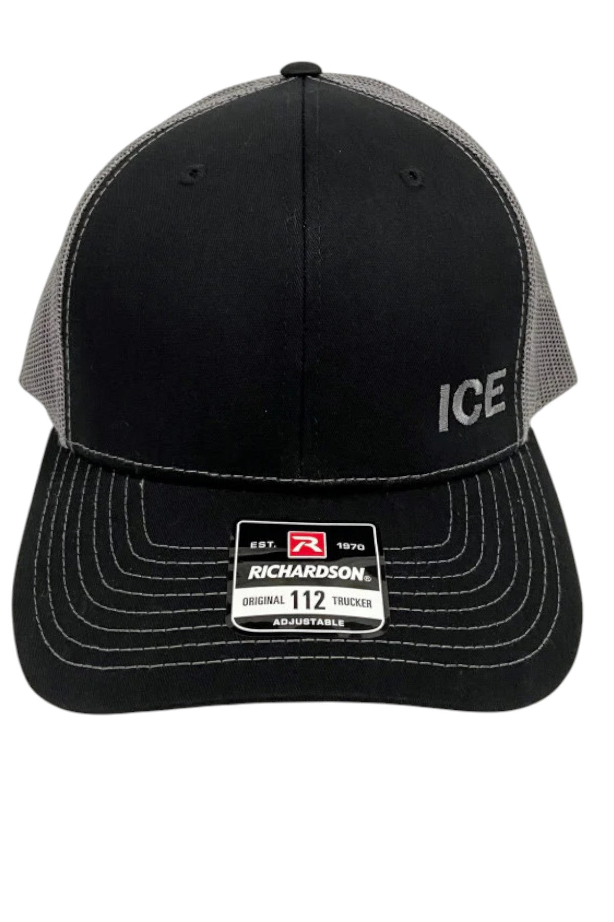 MESH BACK RICHARDSON HAT WITH ICE LETTERS FRONT LEFT.
