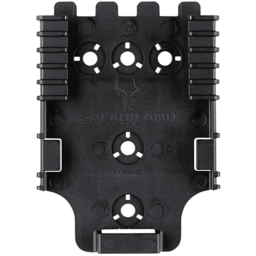 - Attaches to any Safariland Holster with the 3-hole pattern and maintains a Level I Retention