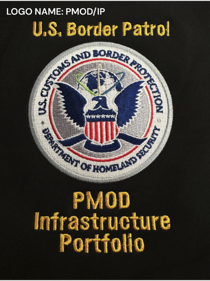 BLACK JACKET COMES WITH THE US BORDER PATROL PMOD LOGO EMBROIDERED ON FRONT LEFT BREAST