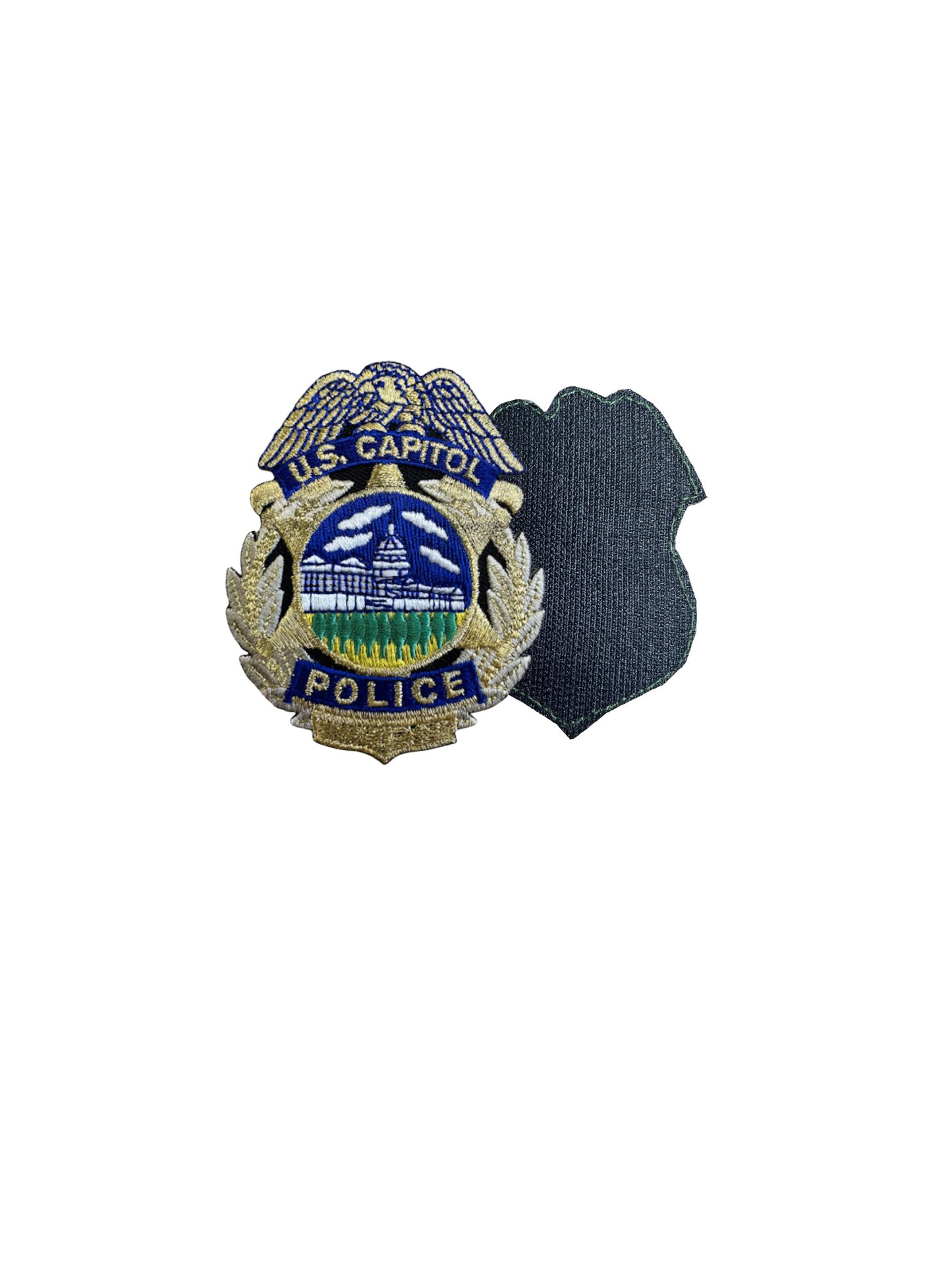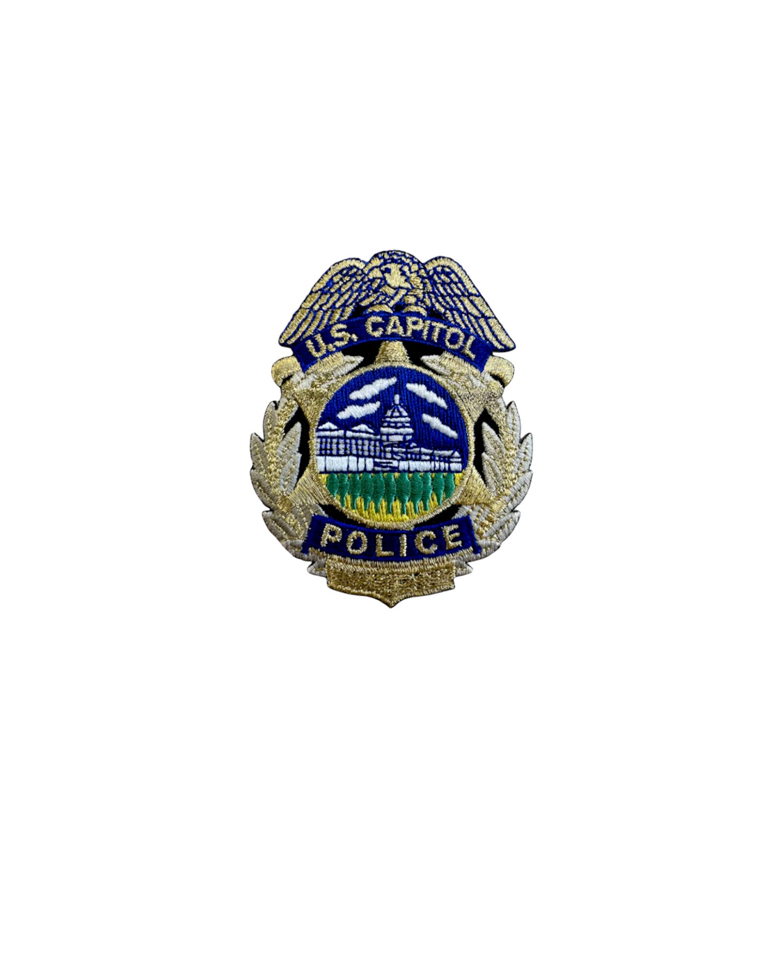 US CAPITOL POLICE BADGE PATCH 3 1/4" YOU MAY ADD HOOK FASTENER FOR $3.00 MORE.