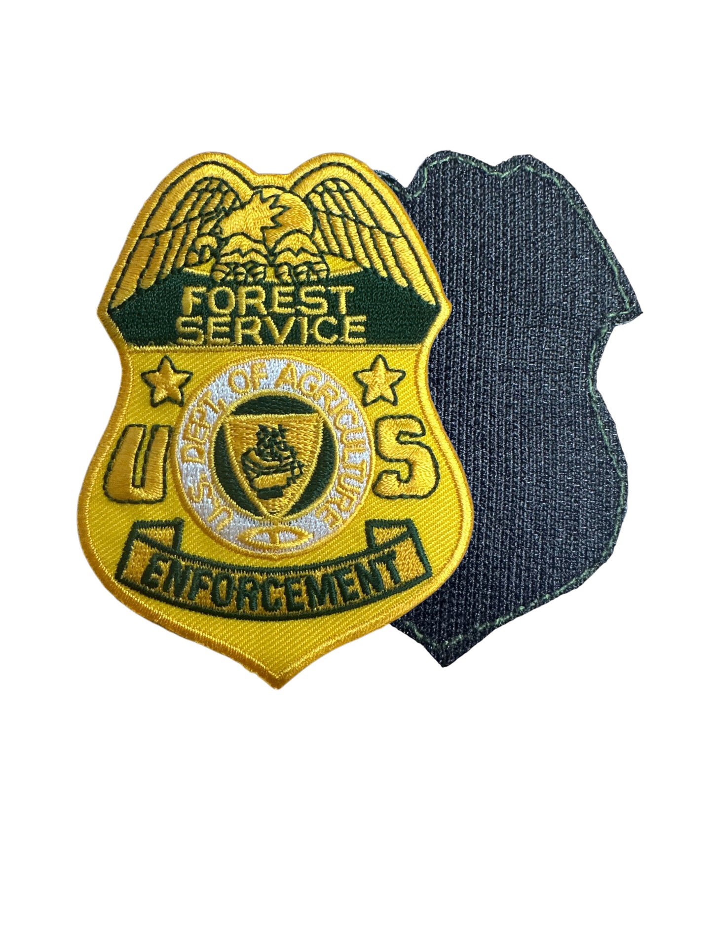 United States Forest Service large enforcement badge. Offered in gold/green or o.d. green/black. 3 3/4″ THIS ITEM IS RESTRICTED TO FOREST SERVICE ONLY.